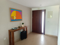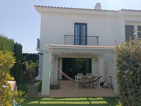 Alquiler de chalet de 2 plantas. En planta baja: cocina, salón y baño. En planta alta: 4 dormitorios y 2 baños completos. Jardín privativo y piscina comunitaria. Provista de aire acondicionado (frío/calor) y ventiladores en todas las habitaciones, en salón con ventilador y estufa pellets. Servicio de Internet fibra wifi y 3 TV. Dispone de cama matrimonial, 5 camas individuales y 1 litera, para un máximo de 9 personas. Dispone de plaza de garaje en sótano.