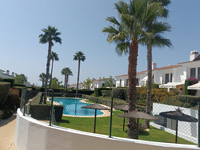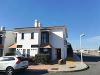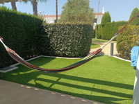 Alquiler de chalet de 2 plantas. En planta baja: cocina, salón y baño. En planta alta: 4 dormitorios y 2 baños completos. Jardín privativo y piscina comunitaria. Provista de aire acondicionado (frío/calor) y ventiladores en todas las habitaciones, en salón con ventilador y estufa pellets. Servicio de Internet fibra wifi y 3 TV. Dispone de cama matrimonial, 5 camas individuales y 1 litera, para un máximo de 9 personas. Dispone de plaza de garaje en sótano.